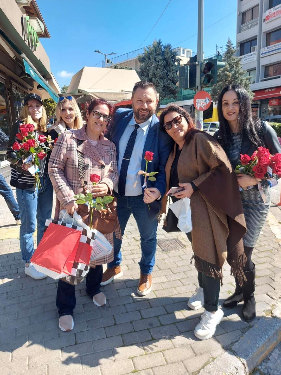 Παγκόσμια Ημέρα Γυναίκας. Ο υποψήφιος δήμαρχος Χριστοδουλου Βασιλης και επικεφαλής της δημοτικής παράταξης «αλλαγή για τη Νέα Ιωνία» μαζί με στελέχη της, σε μια κίνηση υψηλού συμβολισμού λόγω της ημέρας προσέφεραν κόκκινα τριαντάφυλλα στις γυναίκες της πόλης μας.